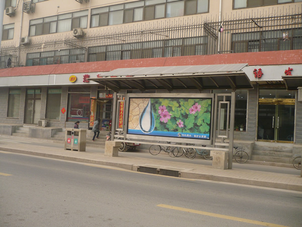 3、柱与灯箱、顶部承托弓之间采用不锈钢螺栓联接。